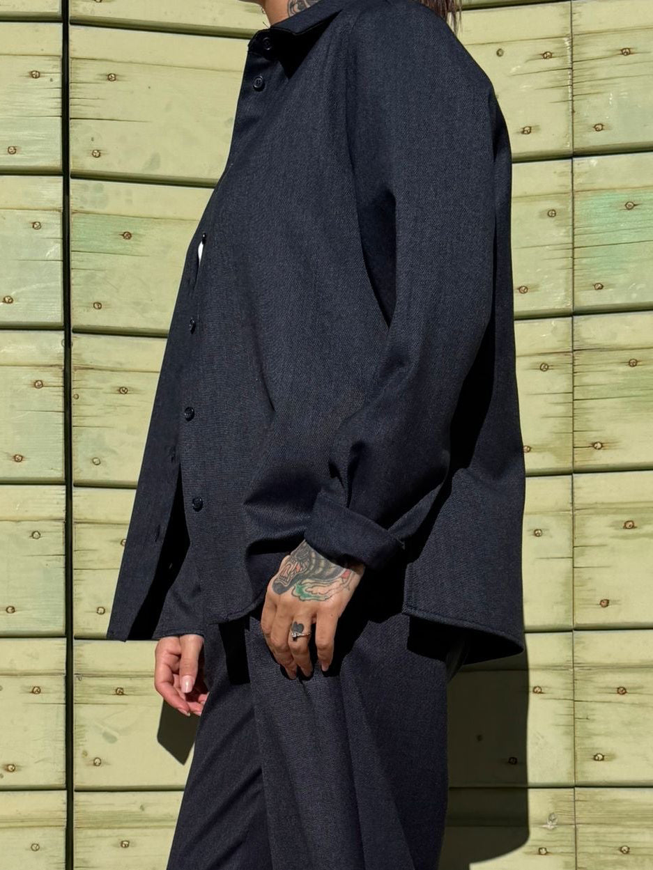 Camicia dal design essenziale e contemporaneo, realizzata in tessuto morbido e piacevole al tatto. Il modello veste over, regalando una silhouette fluida e moderna, perfetta sia indossata chiusa che aperta come camicia-giacca leggera.