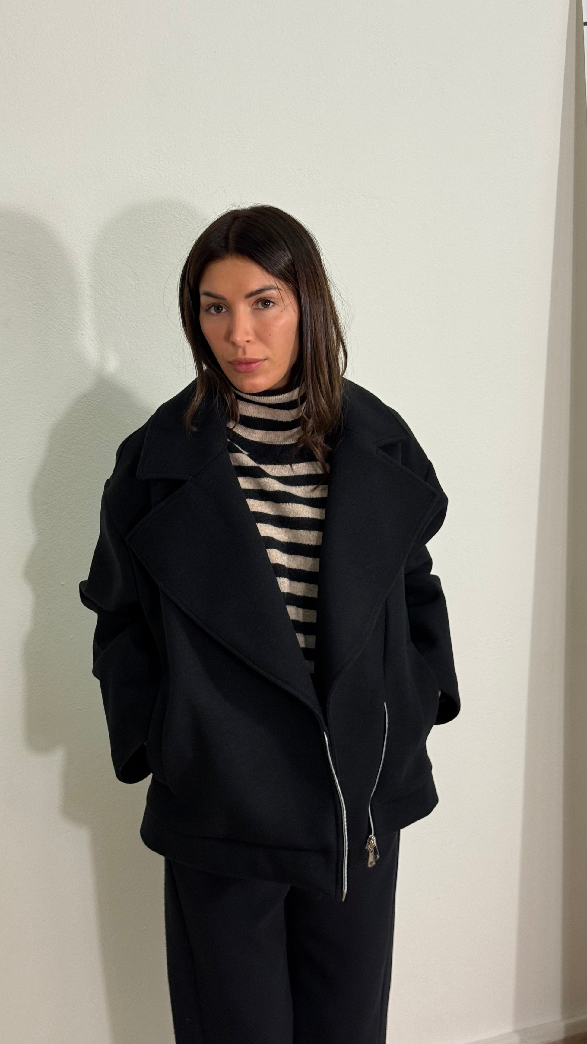 Giacca sfoderata, in tessuto panno lana caldo e confortevole con zip laterale e doppio cursore